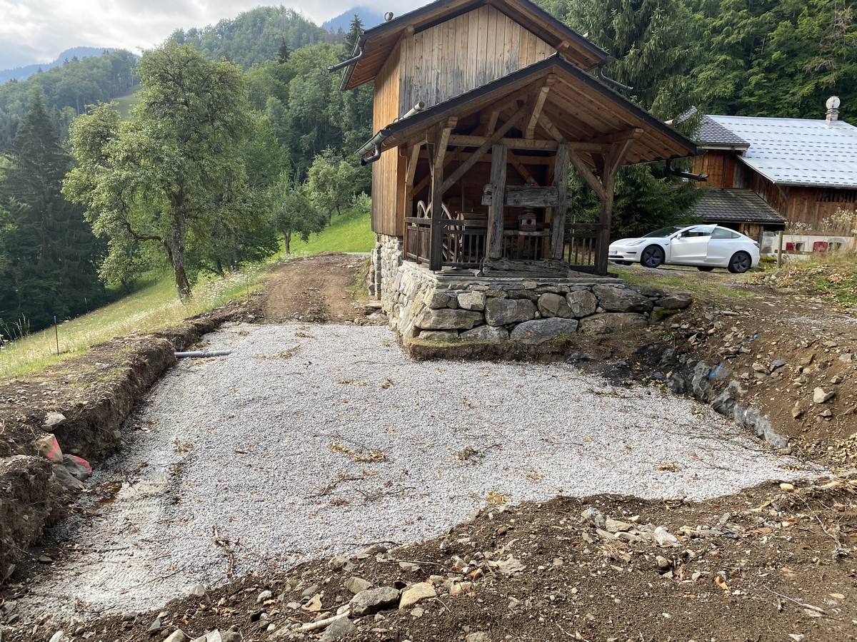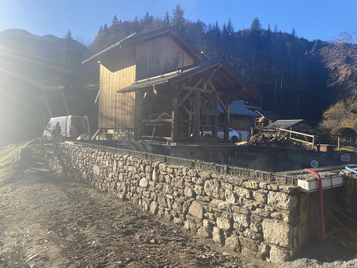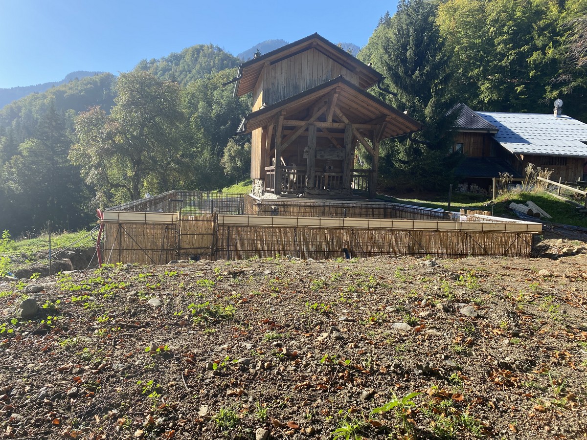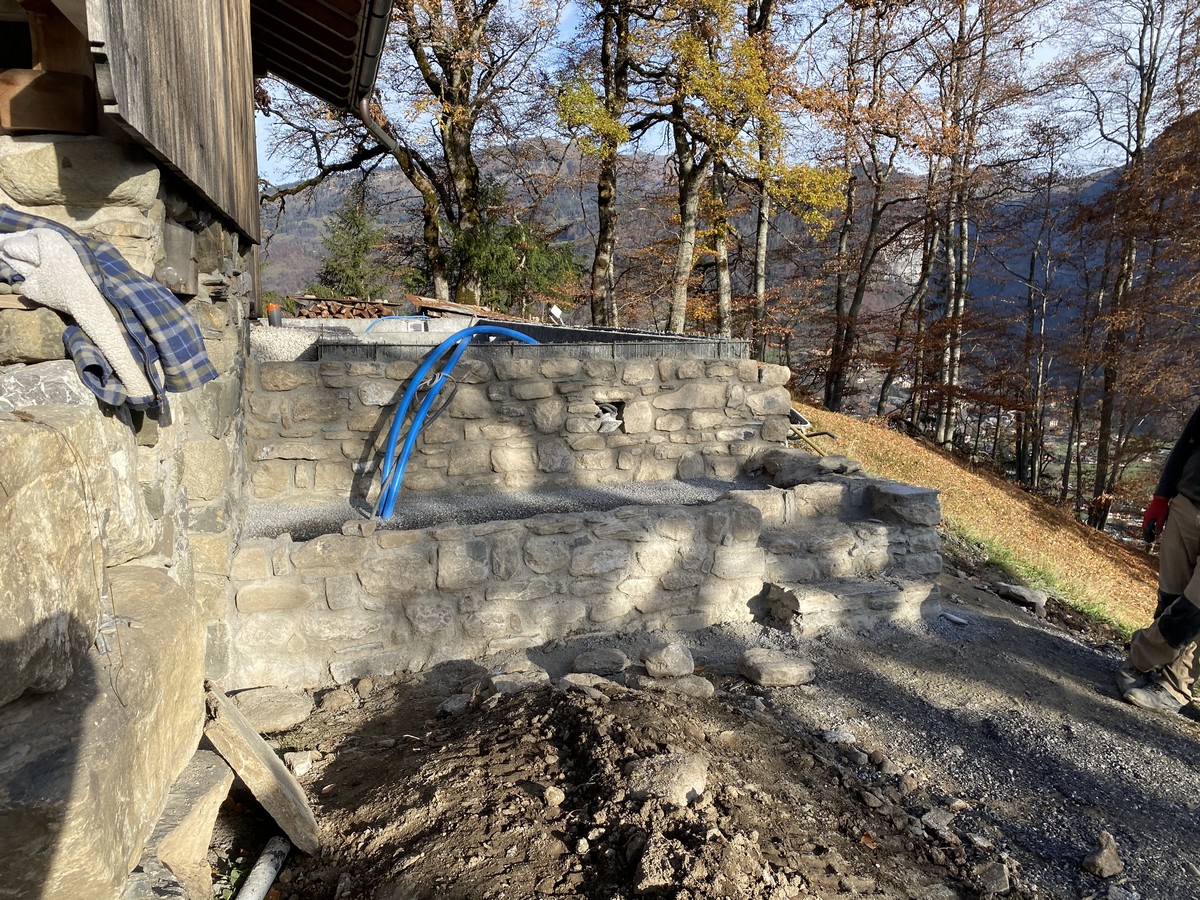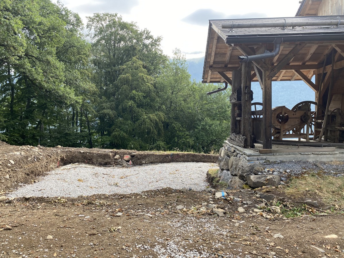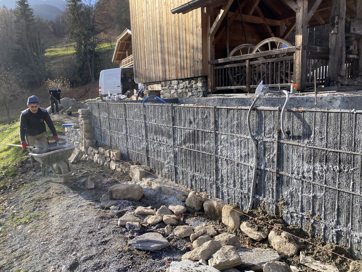 Afin d’offrir le luxe d’une piscine face à la montagne, CD a su allier création et savoir-faire pour implanter un bassin en béton projeté autour d’un mazot.
