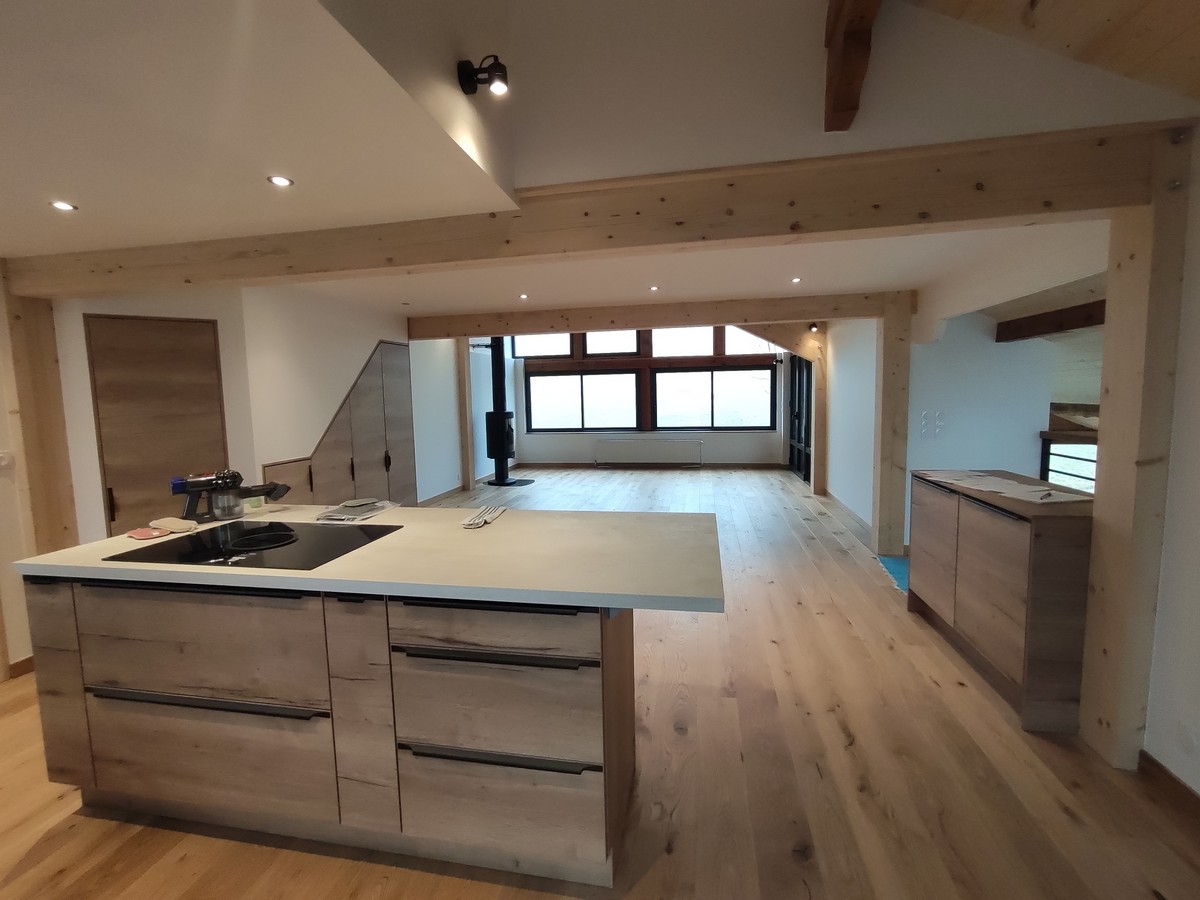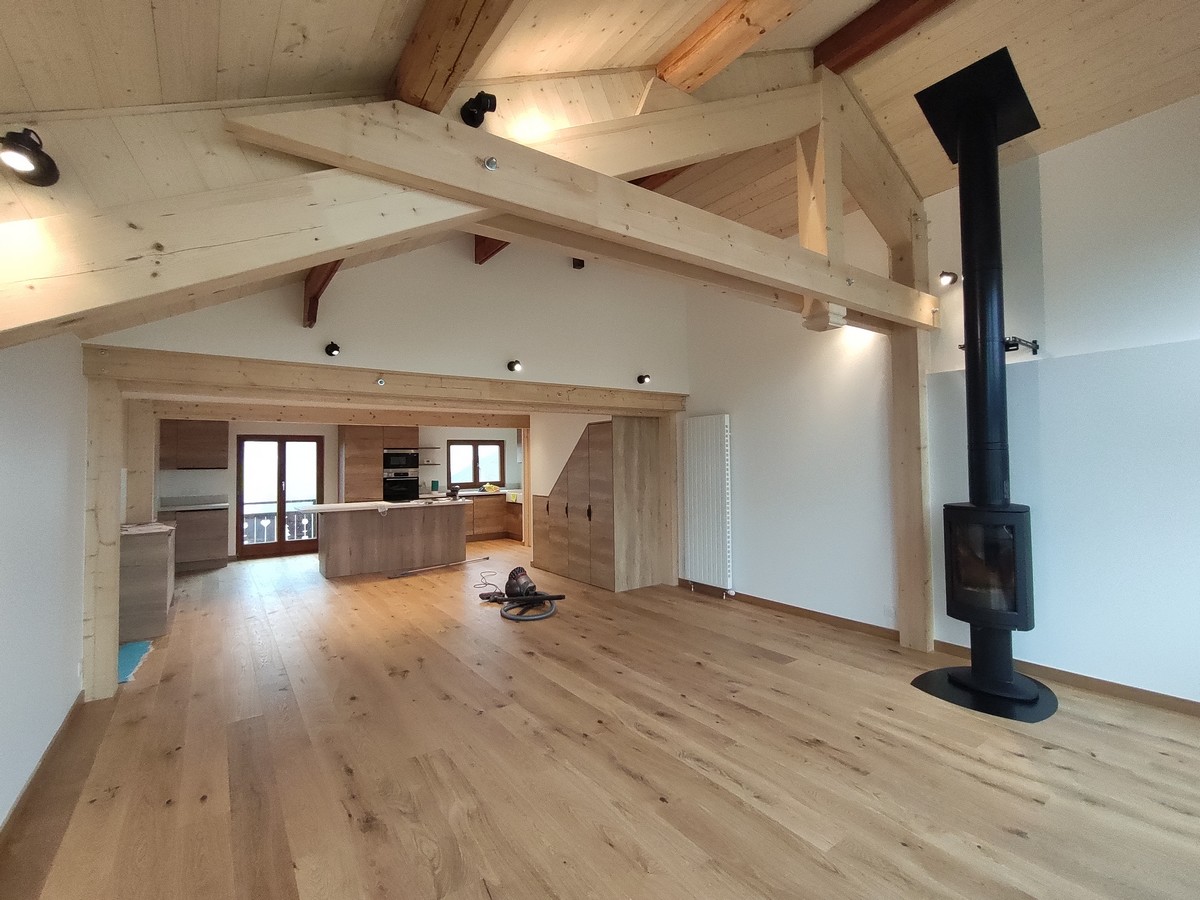 Clément, Paule et leur fille attendaient un heureux événement. Il fallait absolument rénover, isoler et restructurer ce petit chalet madrier trop sombre.