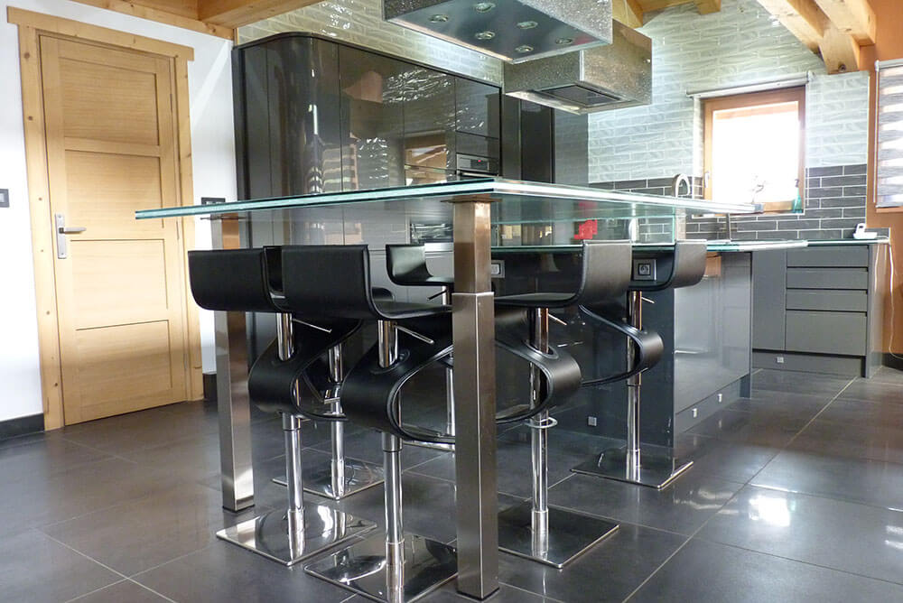 Lovers of design and symbolism, Lauriane and Peter wanted to live in an art gallery where each bit of equipment can be staged before being used for everyday life. Very open but at the same time very discreet, Chalet d’Or was conceived as a Gem case. Of very high quality, its exterior is more refined than a classic chalet and promises what is on the inside if you are allowed to enter.