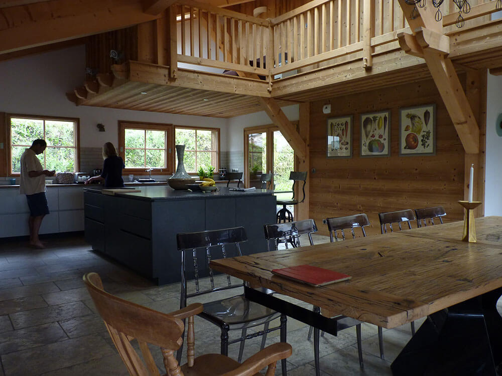 The project consisted of ensuring that this new cottage resembled the traditional house of which she dreamt. Mission accomplished! In Le tradition Brigitte finds herself as if she was in her childhood home with its open kitchen permitting large family reunions, its facades made of old wood, and its basement is plastered.