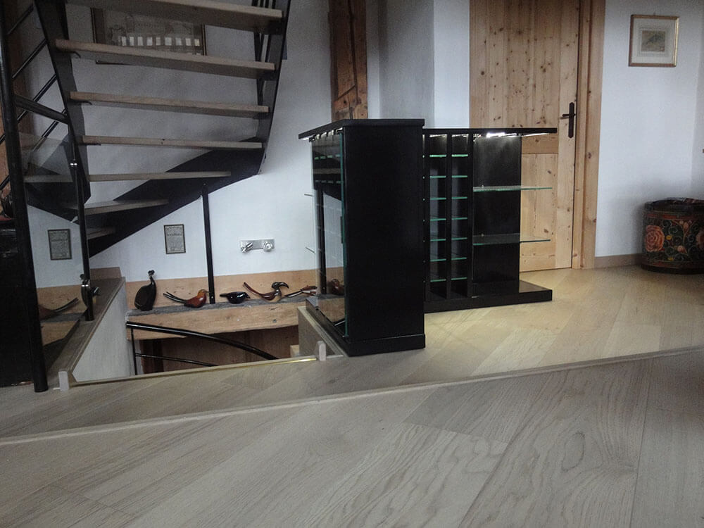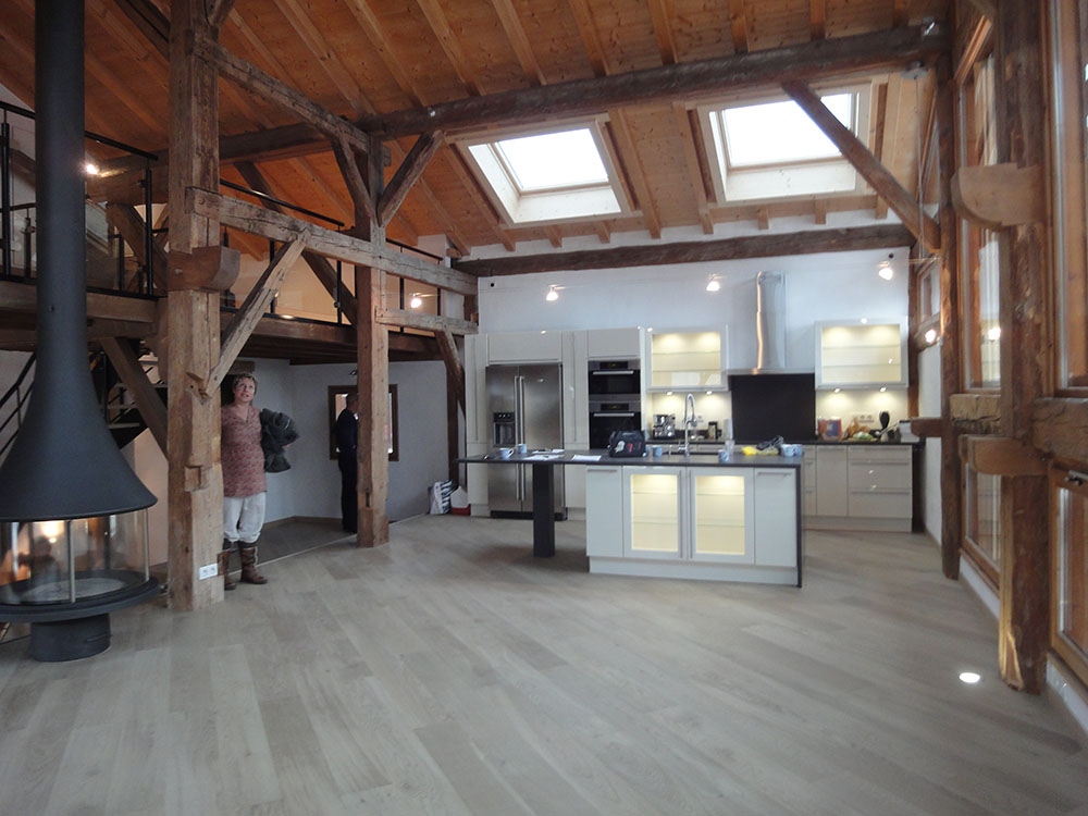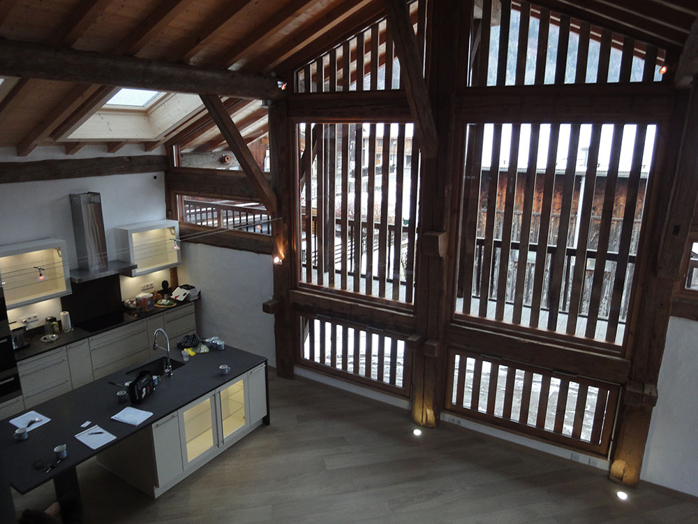 Upstairs: 5 en-suite bedrooms, some of them on two levels, dining kitchen living room “cathedral”, opened on the outside by a glassed facade but hidden from prying eyes by a work of wood boards